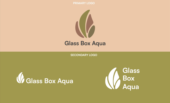 A clean, nature-inspired visual identity for Glass Box Aqua — a boutique aquatic goods brand blending minimalism with the warmth of hobbyist culture.