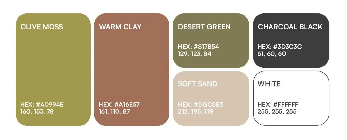I curated a set of tones that feel warm, earthy, and fresh. These tones bring a quiet sophistication while echoing the brand’s connection to nature.