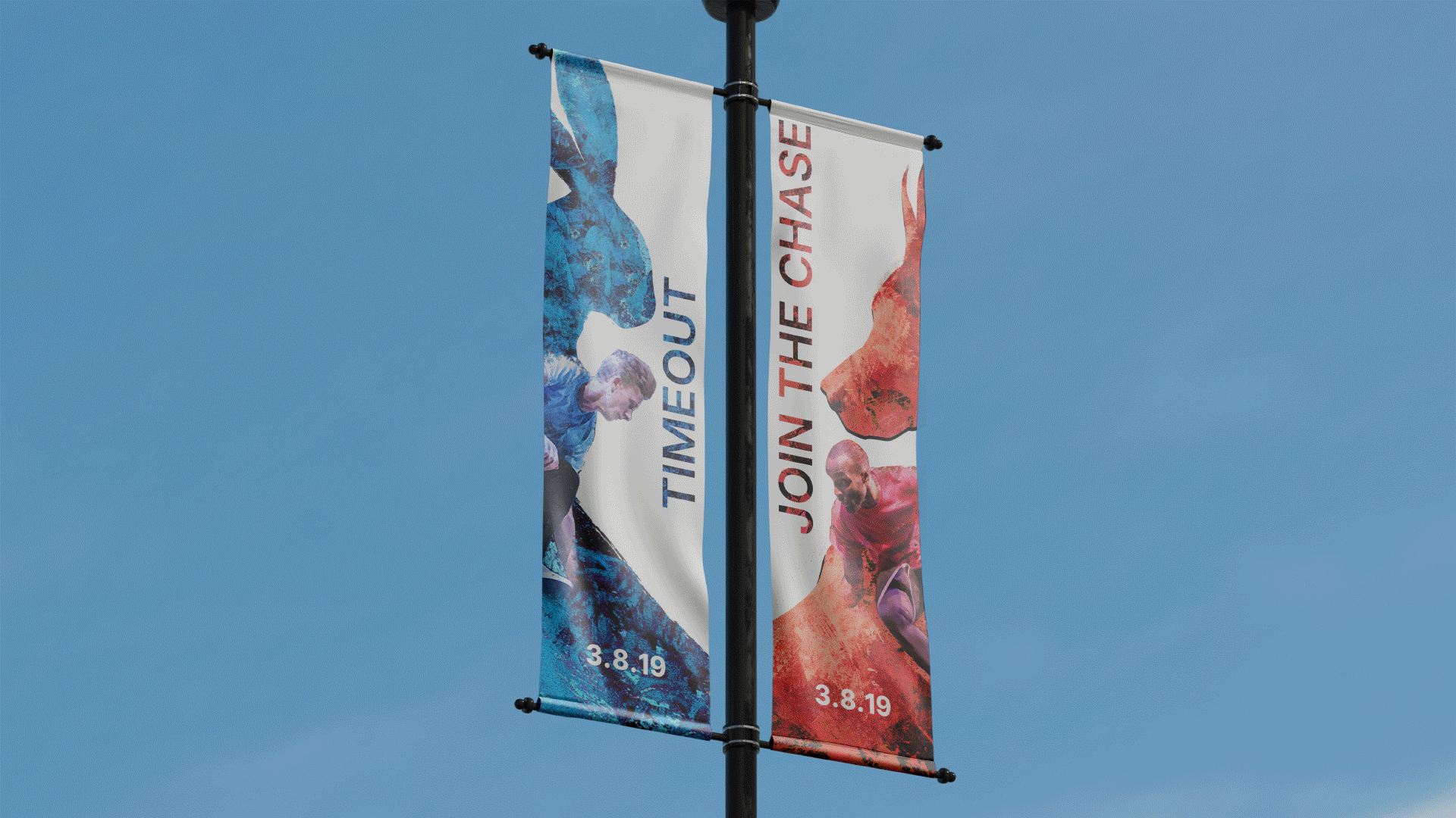 I crafted high-impact outdoor visuals that reflect the intensity of a 1v1 chase. Using the red vs. blue theme, I emphasized the competitive nature of the event—each banner and billboard showcases the dynamic energy of the chase, mirroring the head-to-head tension that makes chase tag thrilling.